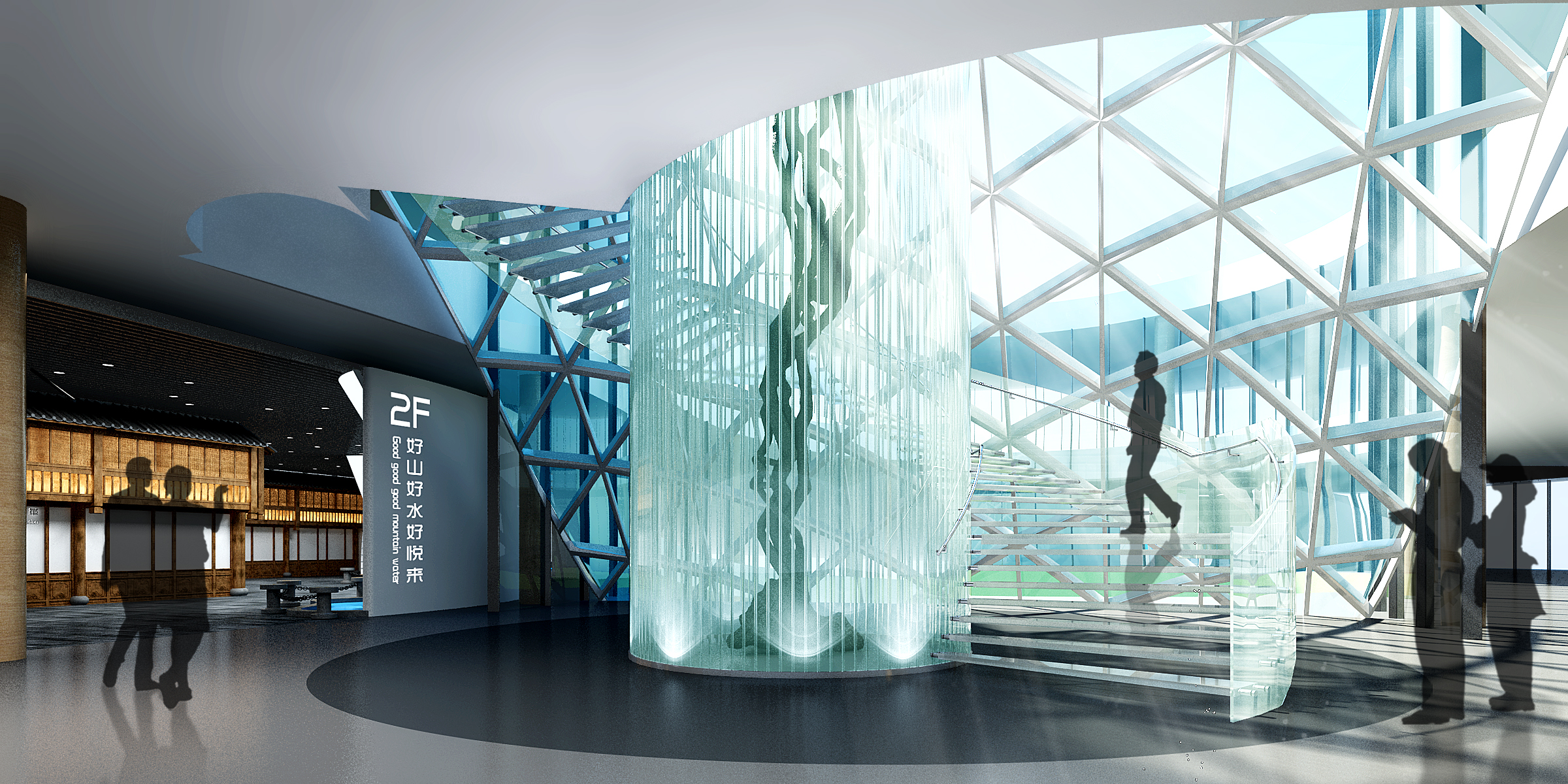 永川大數據展示中心位于重慶市永川區大數據產業園,展館采用現代簡約風,將像素和數據流的概念融入空間。展...